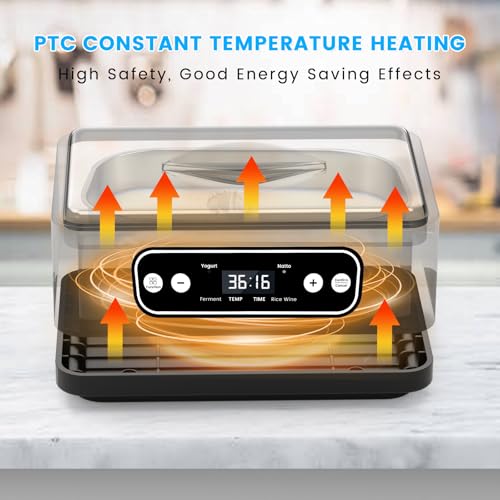- Minuterie réglable et chauffage PTC: Contrôle de la température réglable (21°C–48°C) et minuterie de 1 à 99 heures pour des résultats parfaits à chaque fois. La technologie PTC maintient une chaleur constante pour créer un yaourt parfaitement épais, du natto riche en probiotiques ou un vin de riz riche, quel que soit le goût et la fermentation que vous préférez
