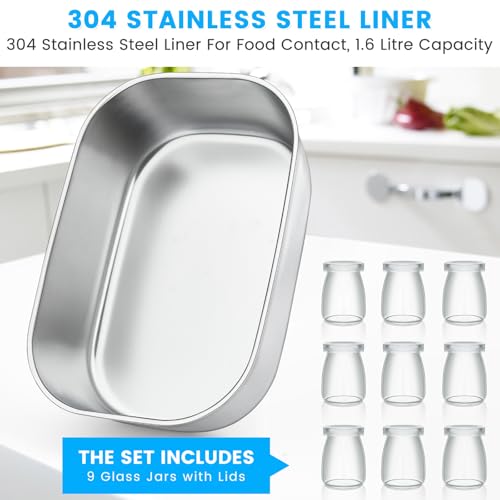 1.6L YaourtièRe, Avec 9 Pots Portables, Pot IntéRieur En Acier Inoxydable 304, Minuterie RéGlable Et Chauffage PTC Pour Yaourt Maison, Natto, Vin De Riz Et Fermentation